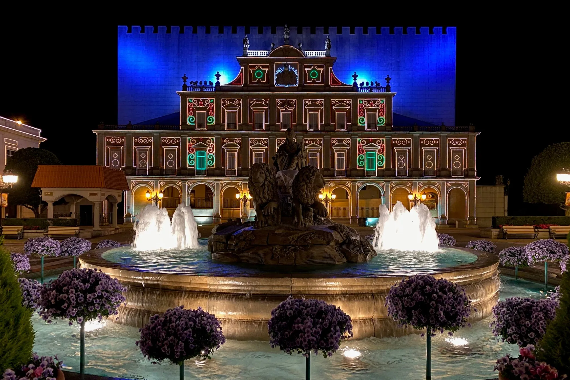 医療従事者をはじめとする新型コロナウイルス感染症への対応に尽力されている方々に感謝と応援の気持ちを込めてナイター営業日の日没後、志摩スペイン村のシンボルのひとつであるスペイン・アランフェス王宮を再現した建物のブルーライトアップを実施いたします。