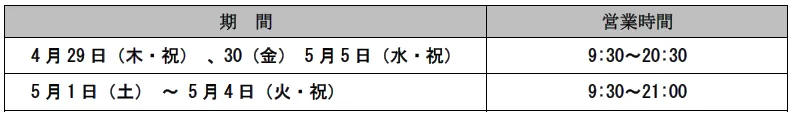 4.ゴールデンウィークの営業時間