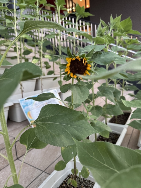 今年で5回目を迎える「ひまわりプロジェクト2025」では、i-Mallの劇場「扇町ミュージアムキューブ」横の大階段にて、 「サンリッチひまわり」(©タキイ種苗株式会社)が間もなく開花を迎えます。今年からは、向かいの扇町公園内でも、同じくサンリッチひまわりをご覧いただけるようになりました。この活動は、ANAグループ 全日本空輸株式会社様より種のご提供を受け、地域の皆さんとともに育てようという取組みです。 「大切な人の無事を祈り、安心安全を願う」 という想いを込めて育てられた黄色いひまわりたち、夏空の下で凛と咲きそろう様子は清々しく、訪れる人の心を明るく照らします。