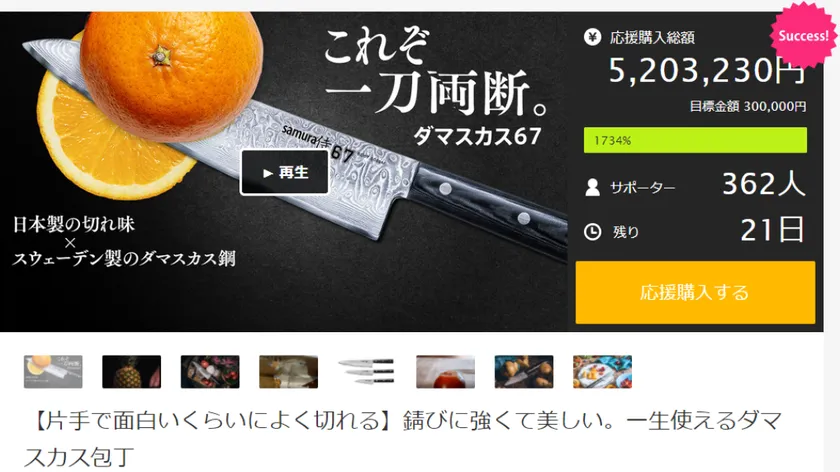 輸入貿易事業を手掛けるSmoonish(所在地:千葉県浦安市)は、応援購入サイト「Makuake(マクアケ)」にて2021年4月5日(月)より「ダマスカス67」の先行予約販売を開始しました。