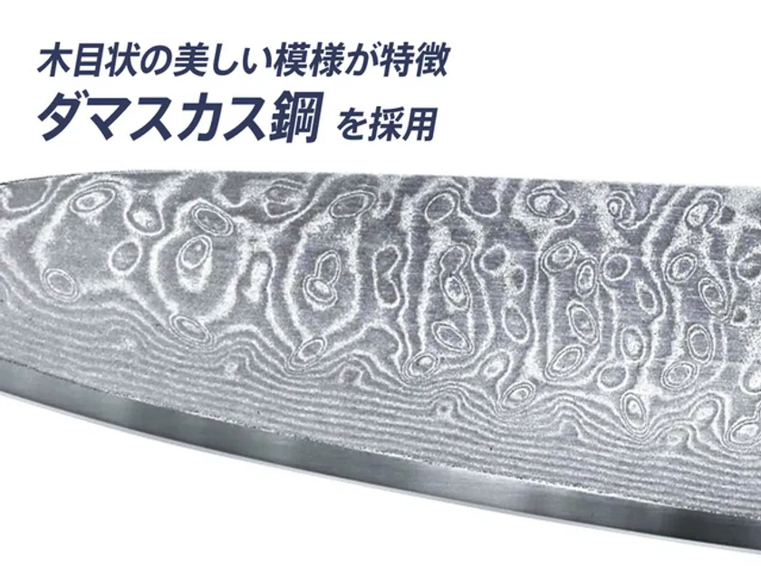 ・ダマスカス鋼の美しい紋様とV金10号の鋭利な刃が、あなたの料理の腕をさらに引き上げます。