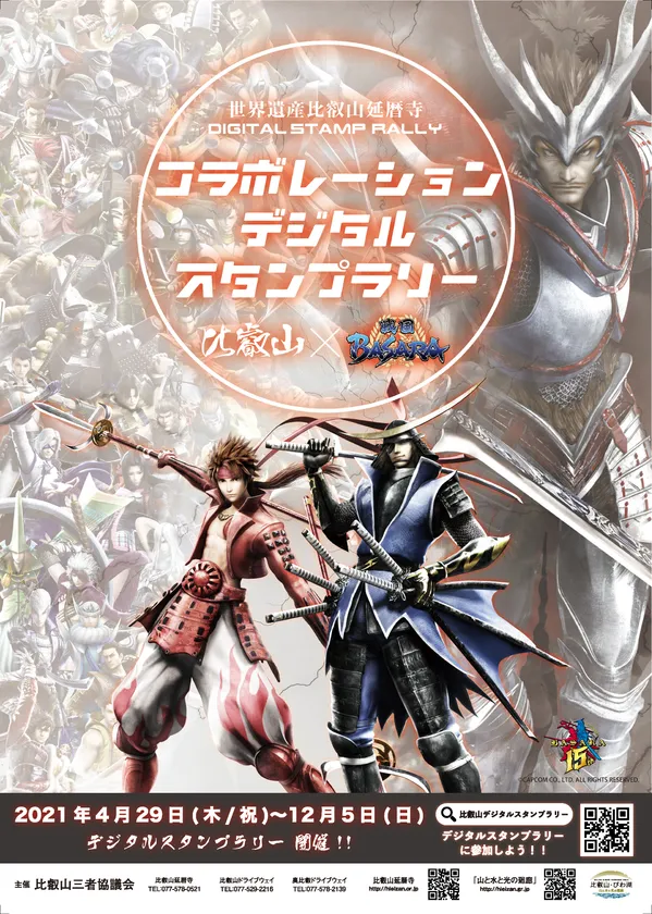 比叡山三者協議会(滋賀県大津市)では、株式会社カプコンの協力のもと、比叡山を中心とする滋賀京都の寺社や観光スポットを巡る「比叡山×戦国BASARA コラボレーションデジタルスタンプラリー」を4月29日より開催します。