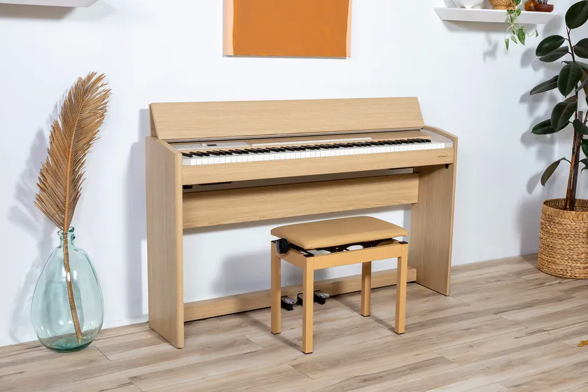 『F701』は、モダンな室内やインテリアに溶け込むスタイリッシュなデザインのデジタルピアノです。ローランドのアップライト型デジタルピアノの中で最もコンパクトなサイズで、狭いスペースでもフィットしすっきり収まります。