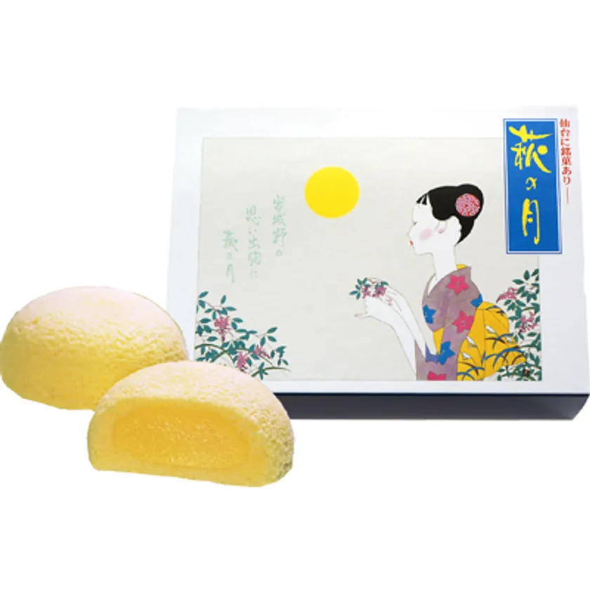 萩の咲き乱れる宮城野の空にぽっかり浮かぶ名月をかたどった銘菓・萩の月。