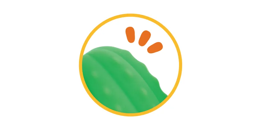赤ちゃんの歯ぐきを刺激するためやみつきになること間違いなし!凸凹にとことんこだわった「サボテン」を採用。スタンド型になっているため、小さなお子様でも立体的で持ちやすくなっています。また、色は赤ちゃんがはじめに認識する色の1つとされている緑を採用。緑色のサボテンはお子様の興味を引きやすく、カミカミ楽しく顎を鍛えられます。