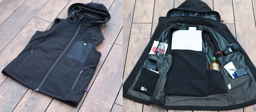 Makuake限定商品の「着るリュック。」は、“手ぶら”をコンセプトとして、パソコン、パスポートと旅行に関わる全ての物がベストに収まるように旅YouTuberと共同開発いたしました。