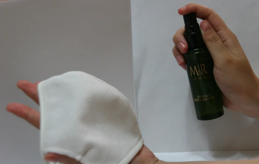 MIMAMOR(ミマモ)はマスクへの使用ということで、刺激性のあるアルコールは使わずに、植物から水だけで抽出した抗ウイルス成分で作られており、木々の優しい清涼感を感じられる商品となっています。マスク用に開発した商品ですが、マスク以外にもテーブル、トイレ周り、日用品、洋服、カー用品等に直接スプレーすることで除菌や消臭効果も得られます。高い効果はありますが、経口試験・皮膚刺激試験・眼刺激試験をクリアしており、安全性が高く、お子さまやペットがいるご家庭でも安心してご使用いただけます。