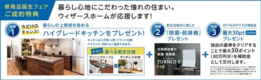 さらには、ウィザースホーム独自の基準をクリアすることで補助金を交付する「WITHEARTH ESS補助金」制度により最大30ポイント(30万円分)をプレゼントいたします。