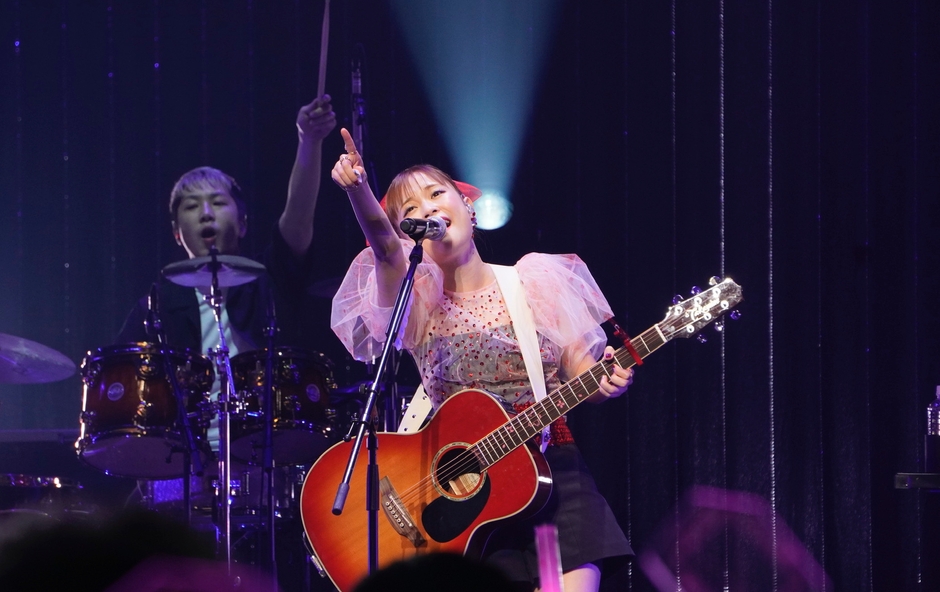 セットリストをガラッと変え、2公演共に歌われた曲は2曲のみ。その一つは『l(エル)』に収録されている「チューリップ」。コロナ禍の中、友人が自ら命を断つという悲しい出来事に遭遇し、その友人へのメッセージを歌にしようと思って作ったこの曲を、「明日を生きる希望を見失ったり、絶望感にさいなまれている人もたくさんいると思います。友人だけでなく、たくさんの方々に希望を届けられたらいいなと思って作りました」とメッセージを送り、アコギの弾き語りで聴かせた。