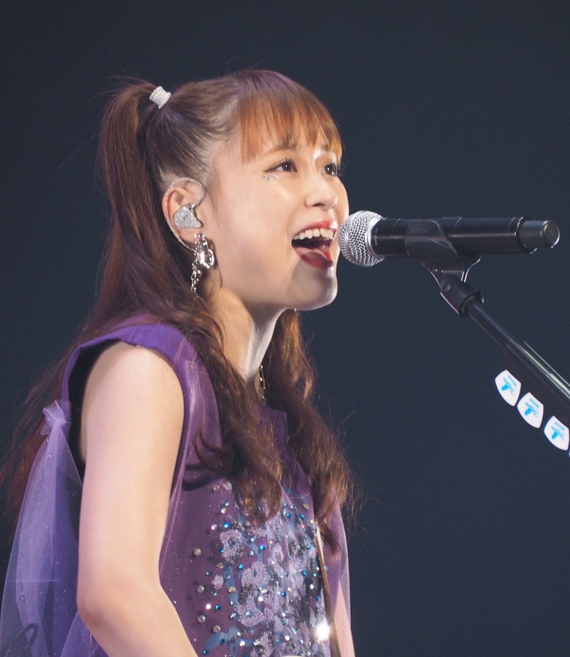 初日、16時45分開演の1公演目は「L version」。“BOAT RACE 2021”のTVCMイメージソングの「STARTLINE」をはじめ、緑黄色社会の長屋晴子が書き下ろした「透ケルトン」、一青窈が作詞を手がけた「#やっぱもっと」などを収録した最新アルバム『l(エル)』。コロナ禍の中、価値観や生活が大きく変化したことで、“life”“live”“love”について考え、生まれた作品となった。この公演の衣装は、アルバム『l』のコンセプトカラーである紫を取り入れたものになっている。