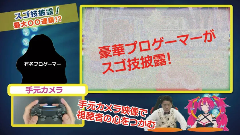 YouTubeをはじめ動画配信サイトにゲーム実況が溢れる中、ただゲームを見ながら解説するだけではなくプロeスポーツプレイヤーの手元にカメラを用意。スゴ技も分かりやすく、テレビならではの表現方法で動画に目の肥えた若年層へ新鮮さを提供します。