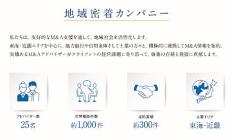 事業内容 :東海地方の中堅中小企業を中心としたM&Aの仲介、コンサルティング及びその他関連業務