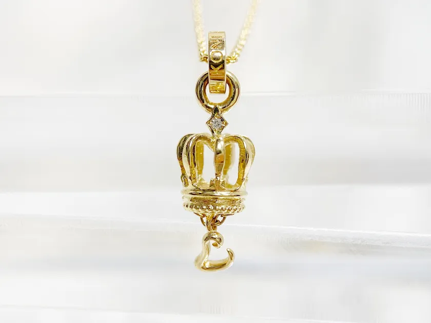 高度な技術によりブランドロゴを完全再現したペンダントトップ。一粒のダイヤモンドがリッチな輝きを放ち、愛を象徴するハートのチャームが揺れる『Koni&Koga』にしかないデザインです。