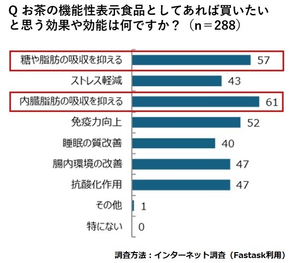 近年、健康意識の高まりにより、「機能性表示食品」としてのお茶への関心が急上昇しています。当社調査(2024年実施)では、9割近い方が「興味がある」と回答。中でも特に求められている効果は「糖や脂肪の吸収を抑える」「内臓脂肪の吸収を抑える」といった生活習慣の改善をサポートするものでした。『<辻利>三種の茶あわせプラス』は、こうしたニーズに応え、日常的に取り入れやすい健康サポート茶として開発。おいしさと健康の両立を実現しました。