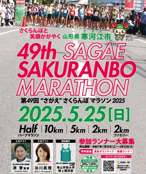 この度、2025年5月25日(日)開催の「第49回“さがえ”さくらんぼマラソン2025」公式ゼッケン留めの販売が決定しました。
