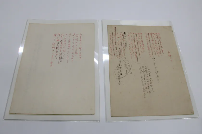 本草稿は、2020年6月に総合花巻病院から花巻市に寄贈された、S博士とされる佐藤隆房氏(故人)のコレクション約4,000点の中から見つかったもので、赤字の上に黒字の修正が入っています。宮沢賢治記念館で所蔵しているこれまでの草稿データと比較すると、赤字と黒字が反転しており、花巻市に寄贈された草稿には「賢治」の署名がありませんでした。そのため、花巻市により、直筆草稿の可能性を探る調査が行われました。
