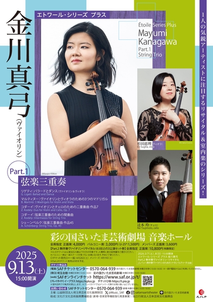国際的に活躍する俊英ヴァイオリニスト金川真弓が彩の国さいたま芸術劇場で「弦楽三重奏」と「無伴奏ヴァイオリンリサイタル」を開催!