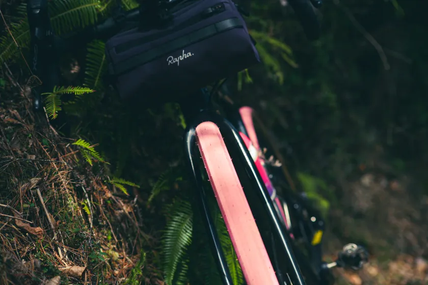 ビビッドで健康的な「フラミンゴピンク」、暗い色が多いサイクリングシーンの差し色として目を惹きます。