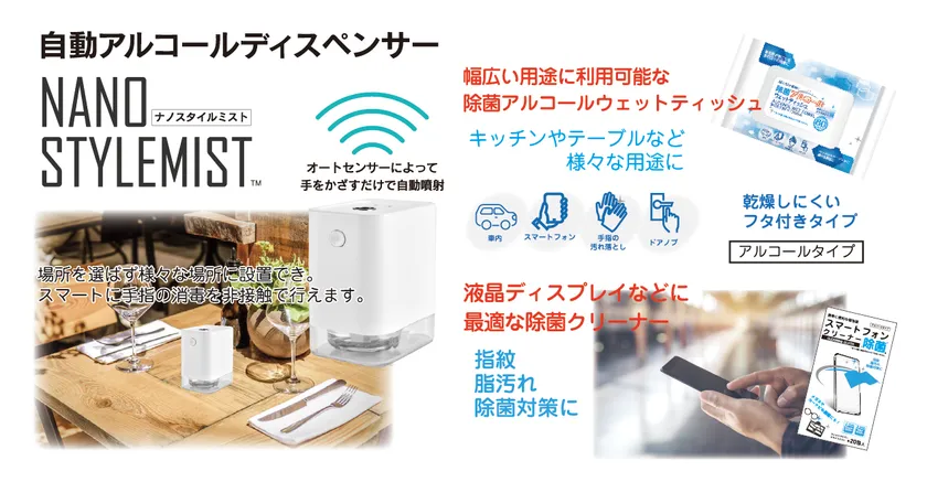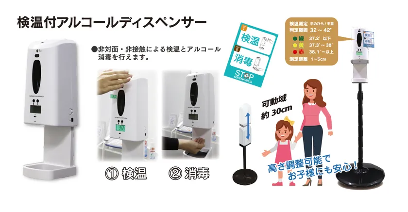 ヒトや環境に優しい安全な消毒除菌用品、非接触、非対面による検温、サービス提供者のリスクを軽減し、より良いサービスを提供することで社会に貢献できる提案をしていきます。