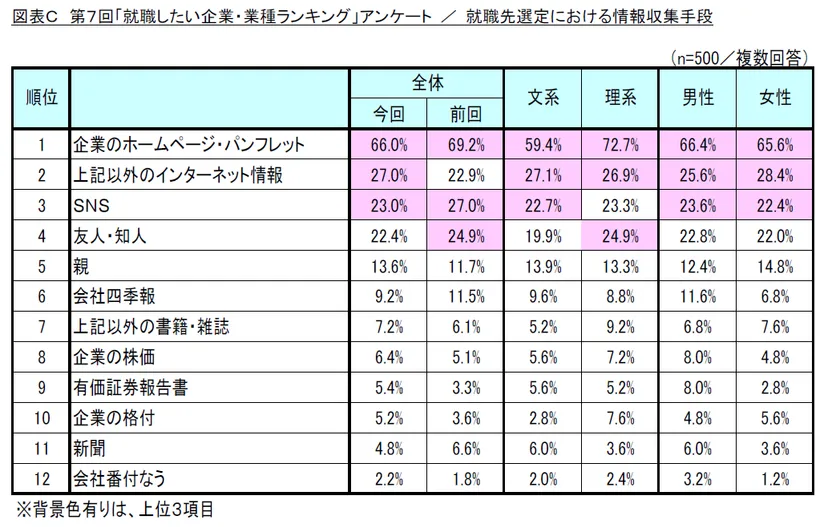 図表C 第7回「就職したい企業・業種ランキング」アンケート/就職先選定における情報収集手段