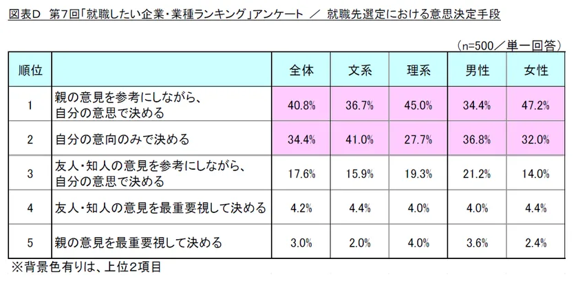 図表D 第7回「就職したい企業・業種ランキング」アンケート/就職先選定における意思決定手段