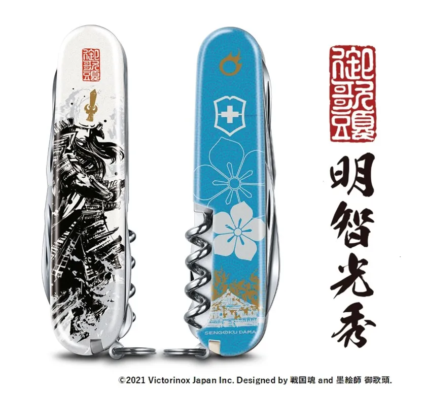 ビクトリノックス ジャパンは、戦国時代・戦国武将をプロデュースする企画集団『戦国魂』に所属する、墨絵師の御歌頭(おかず)氏によって特別に描き下ろされた作品を、「戦国墨絵コレクション」として、2020年に人気のマルチツール「クライマー」に採用しました。ハンドルに墨絵で描かれた戦国武将の「真田幸村」、「伊達政宗」、「石田三成」の日本限定コレクションが好評につき、その第2弾として「明智光秀」、「織田信長」の2名を新たにモチーフにして、2021年4月23日に、各1,000本限定で発売します。