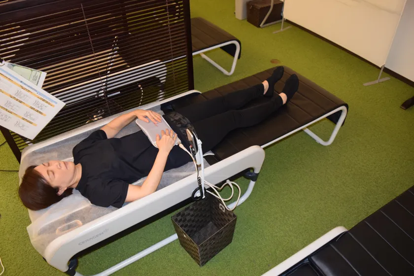悩みに応じた9種類のモードで背骨を指圧・牽引しながら自律神経を整える「温熱指圧ベッド」や、音波振動により全身の血行を促進し、固まった筋肉のコリをほぐし、ストレッチ効果で柔軟性を向上させ、同時にダイエット効果も期待できる「音波振動マシン」、短時間のエクササイズで肩や腰、膝などの動きがスムーズになり日常の生活動作が楽に行えることが実感できる「リアル筋力マシン」などを設置しています。