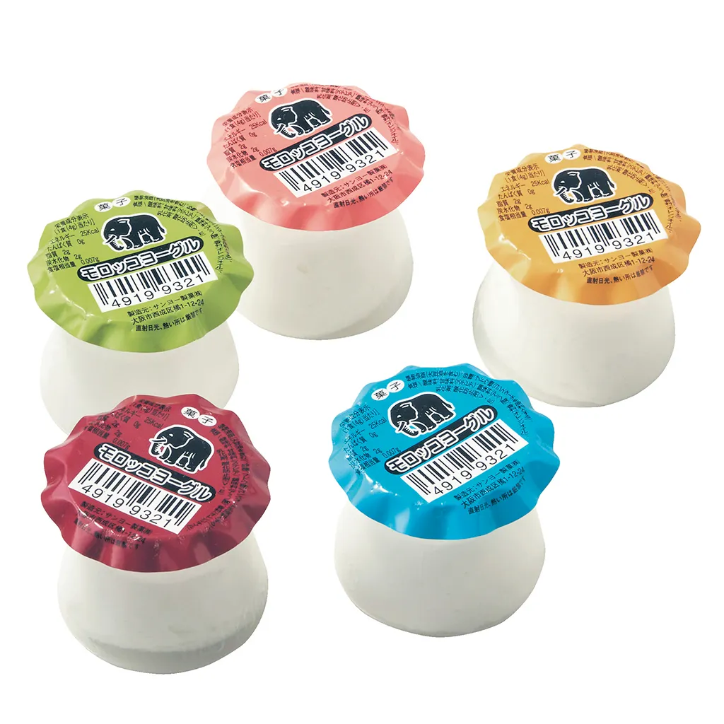 大阪府に本社を構える老舗製菓会社。 甘酸っぱくてふわふわした食感がやみつきになる「モロッコフルーツヨーグル」は、今年60年目の創業時から続くロングセラー菓子。