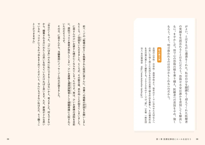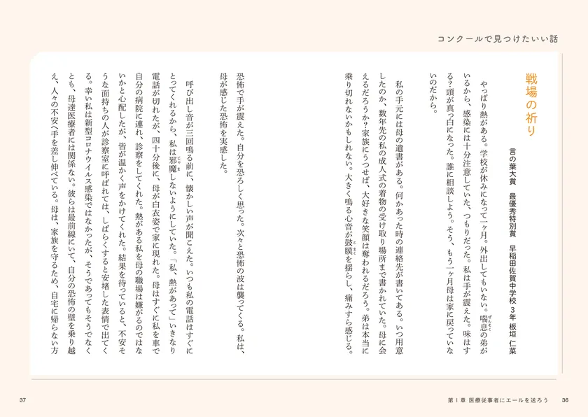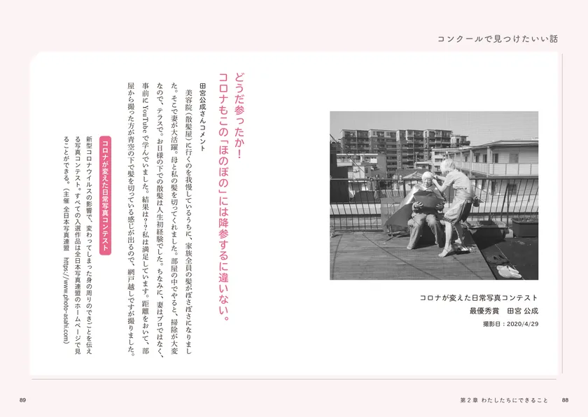 コロナに関する作文・俳句のコンテスト入賞作品や、泣けるエッセイ・じんわりくる写真も掲載。