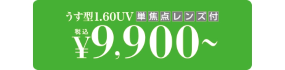うす型1.60UV単焦点レンズが付いて、メガネ一組 税込¥9,900より、その他豊富にご用意しております。