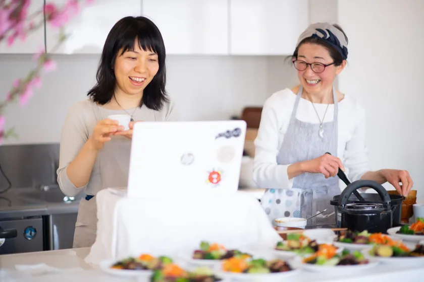 一緒に夕ごはんをつくったり、親子でおやつやおにぎりをつくったり、様々な企画がオンラインで可能です。