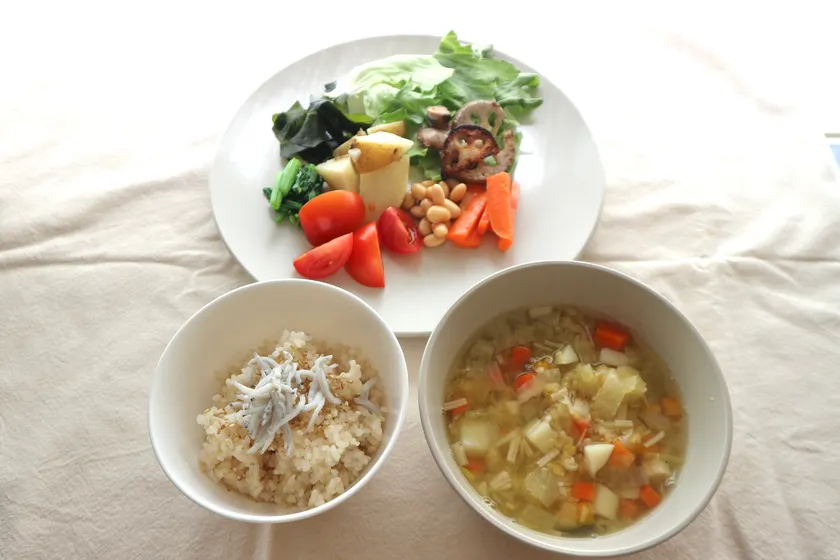 90分のレッスンの中で、ごはん、汁物、おかず、の1食分の献立をつくります。