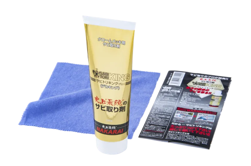 そんな強いこだわりと技術を持つNAKARAIから販売されたクロームメッキ用サビ取り剤 デカキングは、クリームタイプになっているためクロームメッキの表面を傷つけることなくサビだけに反応し、表面を綺麗に磨き上げます。