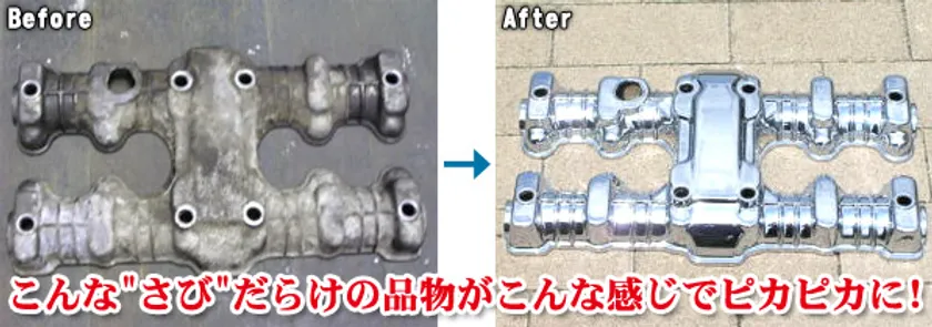 私たちの提供するメッキ加工は、まさに「史上“最鏡”」。熟練の職人技・豊富な設備・分厚いメッキ、この3つを駆使してサビを取り、輝きを取り戻します。