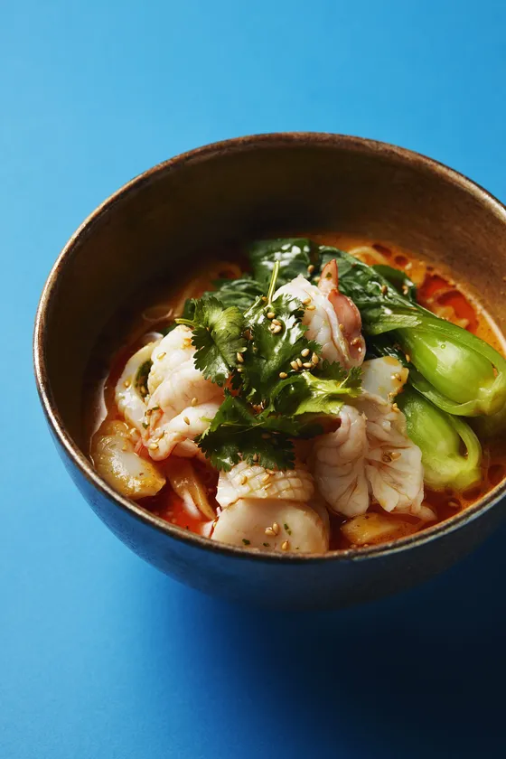 人気の東南アジアのヌードル料理“ラクサ”。シャングリ・ラ ホテル 東京では、「ザ・ロビーラウンジ」とインルームダイニングでカレーラクサをご提供し、多くのゲストに愛されています。今年の夏は、このカレーラクサが暑い夏でも食べやすい“冷やしカレーラクサ”として登場します。濃厚な海老やスパイス、ココナッツミルクを使ったスープには、従来使用している細麺ではなく、食べ応えのある太麺を合わせ、イカなどの魚介とパクチーをトッピング。マイルドな辛さとスパイスが食欲をそそる一杯へと仕上げます。