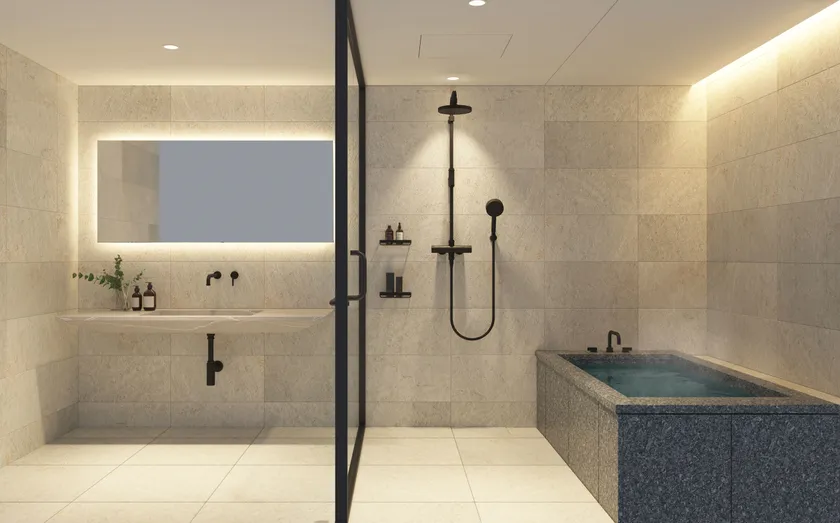 平田タイル・SANEIの厳選上質素材とアステック「和」モダン浴槽の融合