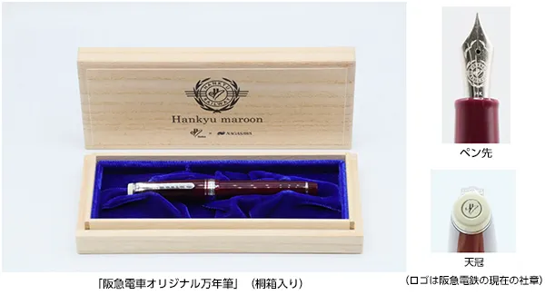 阪急電鉄では、ナガサワ文具センターとのコラボレーション商品として「阪急電車オリジナル万年筆」を、4月26日(月)から5月10日(月)の期間限定で発売します。