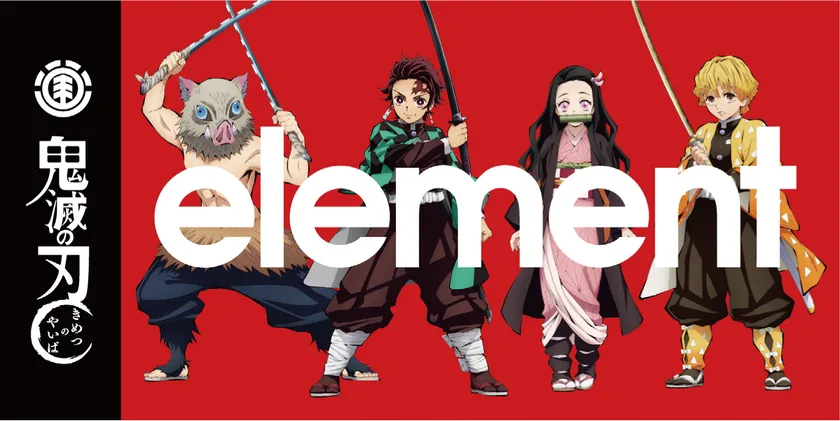 大正時代を舞台に人と鬼との戦いを描いたTVアニメ「鬼滅の刃」と、世界的なスケートボードブランド「Element Skateboards」との注目コレクション。自然を構成する四元素「風・水・火・地」をブランドテーマとするElementと、「鬼滅の刃」との世界観を表現。個性豊かなキャラクターが描かれたTシャツが4月より先行リリース。さらに9月には、スケートボード等、他では手に入らない貴重なラインナップが登場予定。