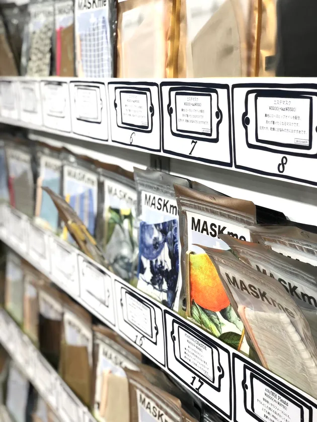 「MASKme/マスクミー」は昨年12月よりポップアップストアの展開を始めました。ECサイトが主ではありますが、実際に商品を見ることができる機会として各地で好評です。ポップなデコレーションに40種類以上のカラフルなマスクがずらっと並ぶ展示は、見る人を元気付けます。