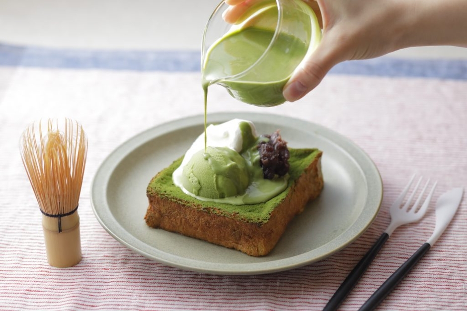 OMOrningリゾットやピザトースト、そして、京都で昔から愛されてきた生麩(なまふ)を使ったカツカレーなど、メインを選べるランチセットを提供します。また、デザートには抹茶フレンチトーストがおすすめです。焼き立ての厚切りフレンチトーストに冷たい抹茶アイスと粒あんがのっており、自身で点てる抹茶ソースを最後にかけると完成です。程よく溶けた抹茶アイスとフレンチトーストの食感、抹茶の深い味わいを楽しめるメニューです。