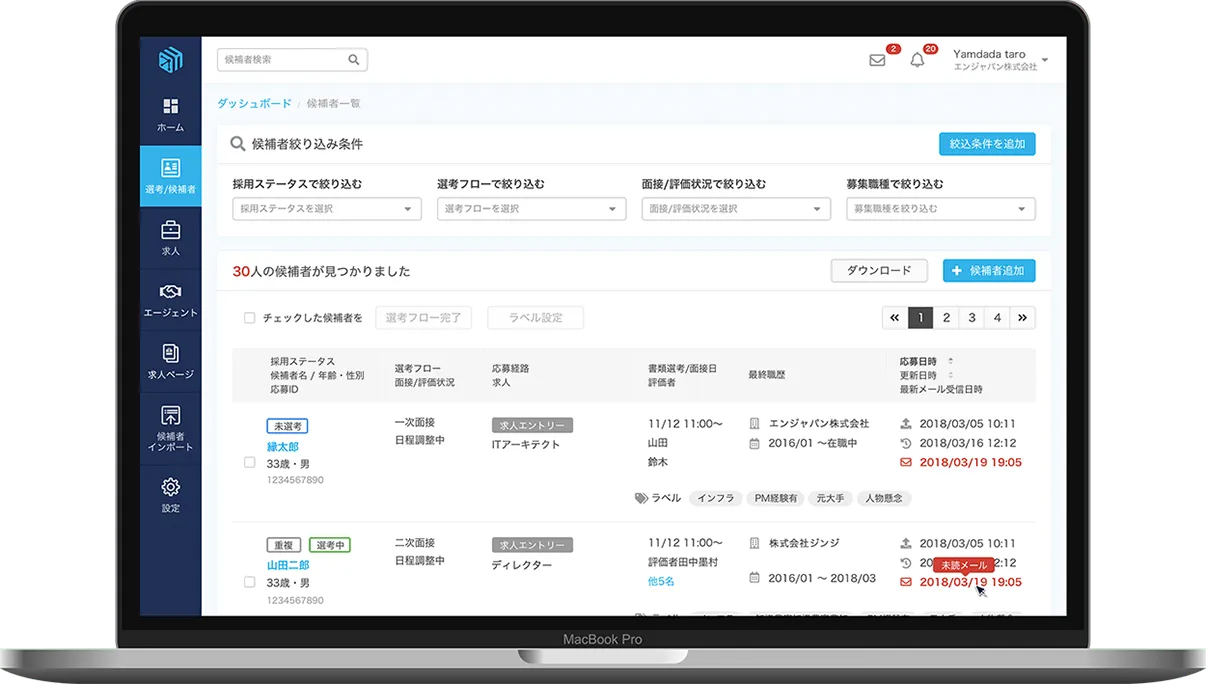 Hirehub(ハイヤーハブ)は、応募から入社までの採用プロセスを効率化できる採用管理システム。すべての機能が完全無料で利用可能です。人材エージェント・求人メディア・自社サイトなど、さまざまな経路からの応募者を一元管理。選考の進捗管理や面接日程の調整、応募者とのやりとりなどをHirehub上で完結できます。