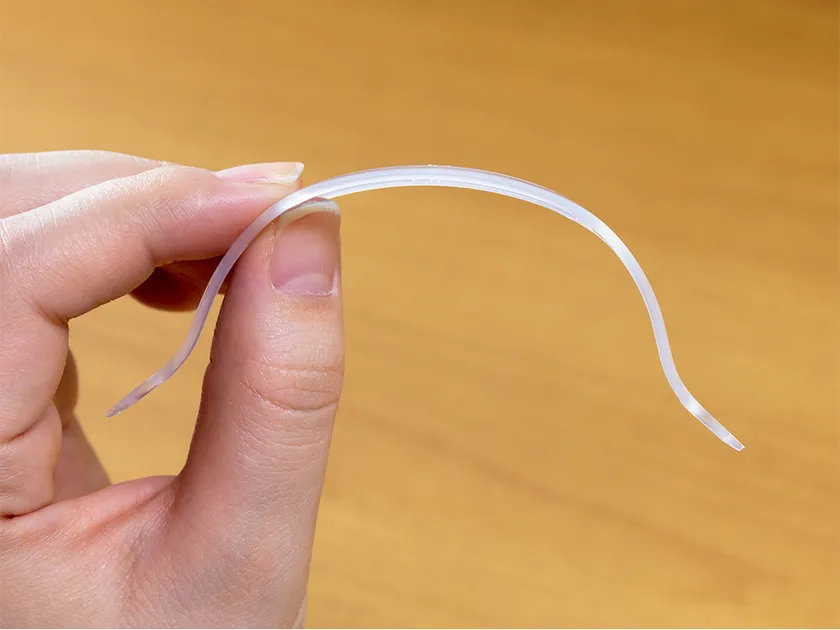 本品「ライフマスクサポーター 小さめサイズ」は、一般的な不織布マスクより軽い1.1グラムの樹脂製です。マスクを立体的にするためマスク全体で通気が行われ、長時間のマスク着用でも不快さを軽減します。