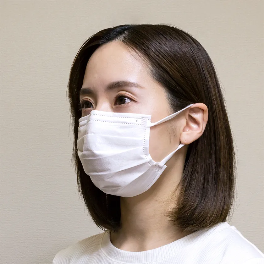 装着後も外見は普通のマスク姿なため周囲の人から装着していることがわかりにくいデザイン。
