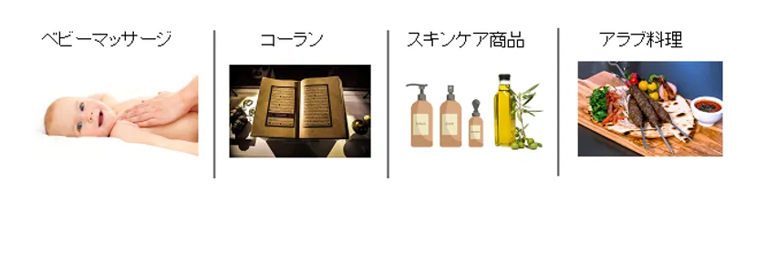アラブでは、オリーブオイルを使ったベビーマッサージの習慣、コーランでの使用推奨に関する記述、オリーブのスキンケア商品が多数存在していることから、「オリーブオイルは肌に優しい」ということが、アラブ文化に根付いています。また、今回発売したサウジアラビアの内陸部は高温で乾燥しており、肌をケアする意識も高く、乾燥肌のためにオリーブオイルで身体をマッサージする習慣があります。赤ちゃんの肌に対する意識も高く、赤ちゃんには、お風呂上がりに、オリーブオイルでマッサージして保湿するということが一般的です。