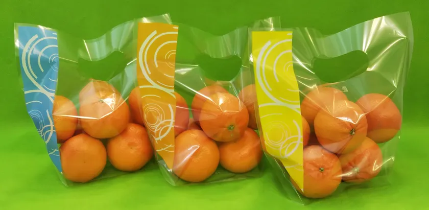 エフピコチューパは近年、青果物用としてサンバッグ雲竜柄(取っ手部分に雲竜柄入り)の開発、拡販を行ってまいりました。しかしお客様より『みかんにもマーコットにも使えて、ひな壇において中身が見えやすい袋がないか』というご意見をいただきました。様々な青果物に使用できるデザインのスタンドバッグを作ってほしいとのご要望をいただいたことから、この度「サンバッグLILLY」を開発いたしました。「サンバッグLILLY」は、イエロー、ブルー、オレンジの3色からお選びいただけます。