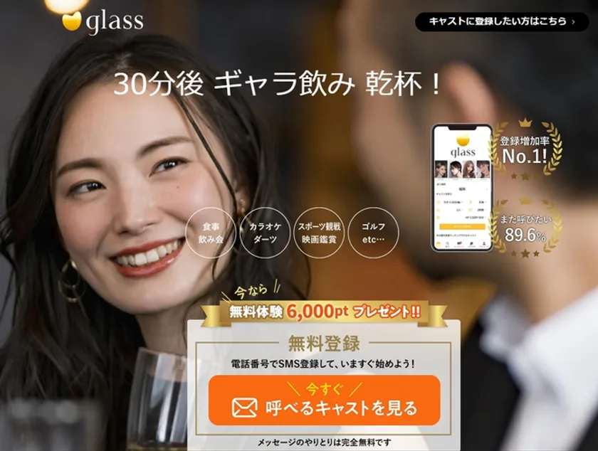 ギャラ飲みglassはブラウザを用いたアプリケーションを展開しております。現在Apple Store、Google Playにも申請中。SMS認証一つで始められるので比較的簡単に始めることができます。