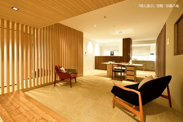 今回の物件は、京都八坂の祇園の一角にあるマンションの一室を「時と遊ぶ」をコンセプトにリノベーションしました。地の人と訪問客が混在するこの街で、オーナーが京を楽しむための「栖(すみか)」を作りました。