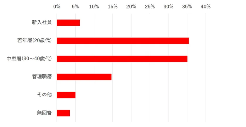 半数以上の企業が20代~40代の若手・中堅社員の技術力向上について課題を掲げている。