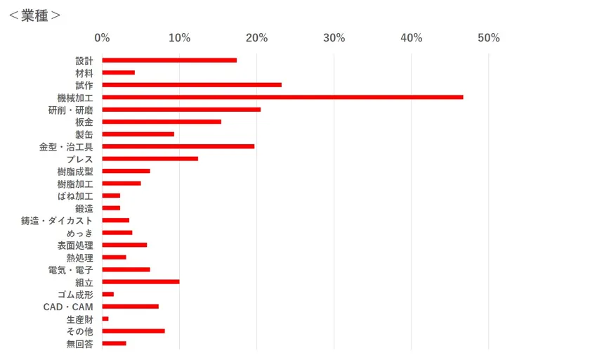 回答結果によると、工場の稼働率は「かなり混んでいる」「比較的混んでいる」と答えた企業が前回よりも20%以上増加し、過半数を超えました。また、受注予測は「減少」を見込んでいる企業が約30%で、前回の調査よりも約10%減り、さらに「増加」を見込んでいる企業が約5%増えたことから、新型コロナウイルスの感染が拡大して約1年、かなり景況感は改善したといえます。一方、受注予測を「-30%の減少」と回答した企業は継続して10%であることから、企業間格差の拡大が懸念されます。業界ごとの景況感は、前回に引き続き半導体、自動車、医療が好調で、工作機械、自動車、航空・宇宙が不調。自動車は好不調双方に分かれ、部品ごとで好不調の差が広がる傾向が考えられます。
