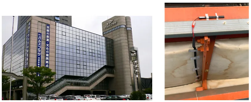 京都府総合見本市会館と「バッテリレス漏水センサ」の設置例
